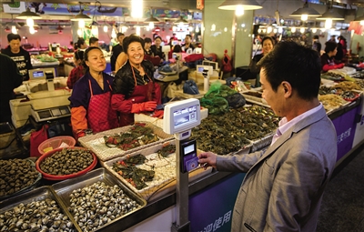 为更好地方便经营户和老年买菜者,我市最潮菜市场——龙湾区状元农贸市场,继开通支付宝支付功能后,又投入100余万元升级硬件并安装“智能秤”,增加市民卡刷卡消费。近日该市场还与龙湾农商银行合作,推出刷市民卡赢“四重礼”活动。杨豪陈蜜摄