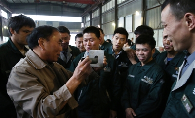 图为机能大赛现场工人在切磋技术