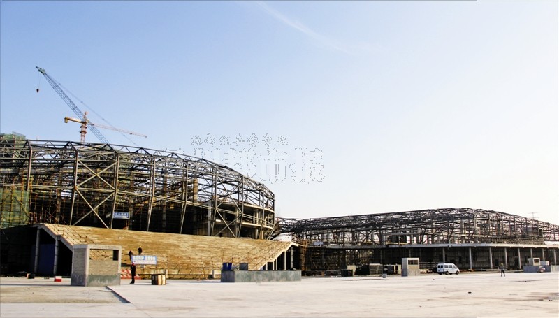 体育综合馆顶部是钢结构造型,工人们正在焊接局部的钢管。“今年10月底,我们对‘两馆’的主桁架进行整体提升。也就是在场馆内部,将顶部钢构建好,然后通过起吊设备将整个屋顶一下子抬到预计高度,再将屋顶和场馆结构焊接好。这道工序格外关键,我们花费了大量的时间进行校对和确认,确保万无一失。”该负责人说,主桁架整体提升对精确度的要求非常高,不能出一点差错,否则不仅影响屋顶的焊接,还会对日后屋顶金属板的铺设带来影响。