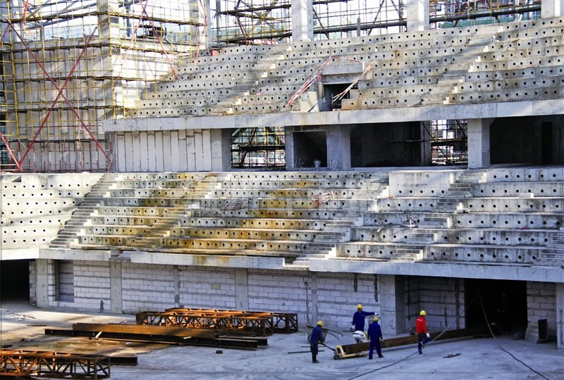 温州奥体中心一期主要由体育综合馆、游泳馆等部分组成,目前已见雏形。