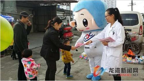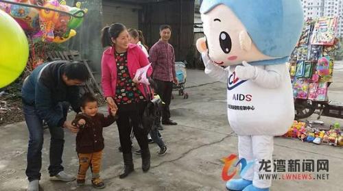 龙湾新闻网讯 一个活泼可爱的艾滋病宣传玩偶行走在路上,成为一道亮丽的焦点,吸引了一大批群众和小朋友。