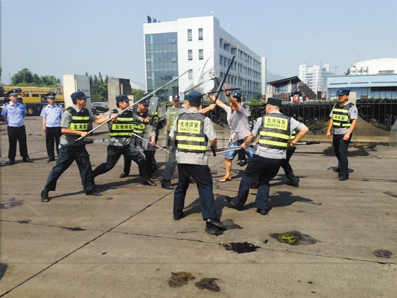 为持续保证保安队伍素质过硬,温州市龙湾保安公司机动大队定期或不定期组织客户单位保安队伍进行队伍常规训练,并加强思想政治教育和业务技能学习,打造一支素质高、纪律严、作风硬、令人放心和满意的保安队伍。