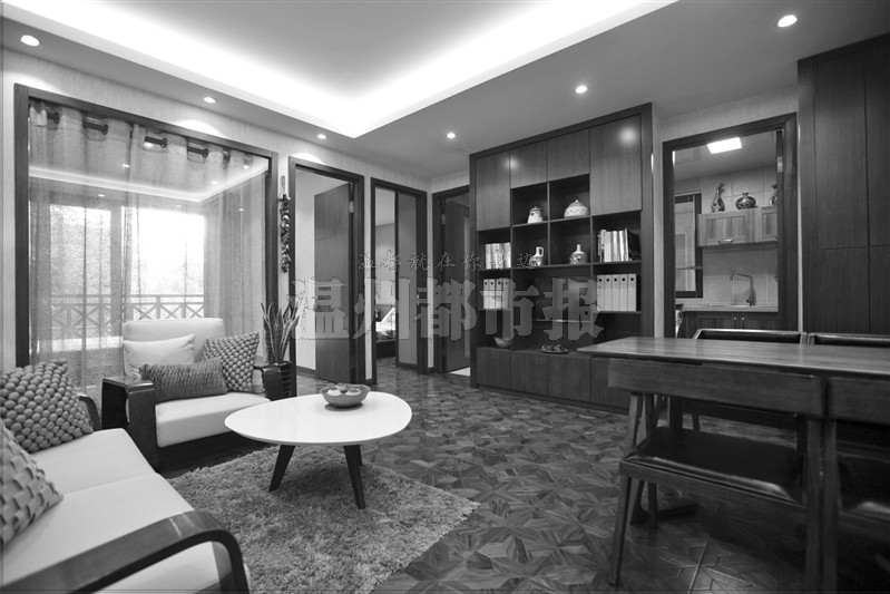 在金色小镇的样板房内,房间均为精装修,家具厨卫一应俱全,可拎包入住。