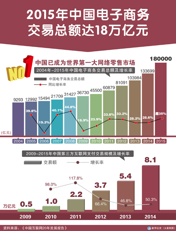 图表:2015年中国电子商务交易总额达18万亿元新华社发大巢制图