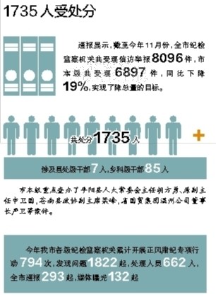 此次工作中,市本级巡查组进驻巡查138个村,接待群众1628批6058人次,梳理并交办问题1501件,解决历史遗留问题和“三访”问题400件;发现违纪线索340起,立案131起,移送司法机关刑事立案55起,开除党籍56人。