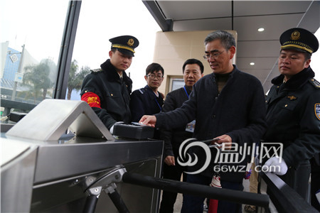 进入候车区共有两条通道,设有4台闸机。据工作人员介绍,为缩短乘客上车时间,BRT站台采取无人售票,乘客入站后,可向右侧闸机旁安置的投币箱内投币,也可持温州公交IC卡、温州市民卡在闸机上方的刷卡设备上刷卡。