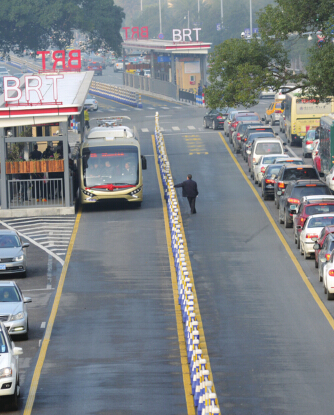 由于市民对BRT车辆很好奇,即使车后有座位,一些乘客仍故意站在车头“看风景”,从而影响其他乘客上下车。