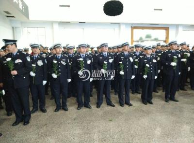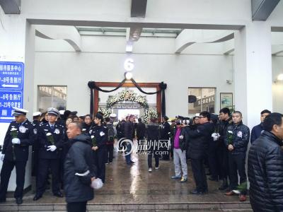 数百名公安交警、亲属、市民参加仪式,送这位忠于职守的好交警最后一程。追悼会服务处工作人员告诉记者,来送别潘超俊的各界人士已超过千人,他们准备了1000多枝白菊供来宾悼念。