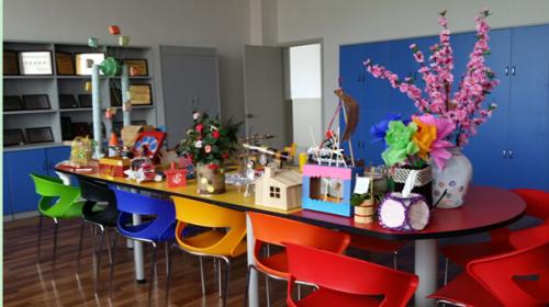 早上,孩子们兴奋地参与“变废为宝”活动。通过短短两个小时的制作,呈现在我们面前的是绝对让人意想不到的美妙的作品:用王老吉饮料罐做成的中国结,用废旧纸板做的琵琶和房子,用灯泡做的鱼缸……。随后,各班评选两件优秀作品送给学校,以示对学校搬迁的祝贺。