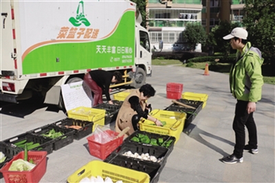 社区居民在选购果蔬。