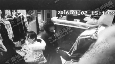 温州网讯临近春节,商家们迎来了销售旺季,与此同时也有些人想趁此机会“捞”上一把。前天,市区一家女装店通过微博上传了一段视频,视频中一名顾客趁店员不备,将一件女士冬季大衣藏在短裙里偷走了。