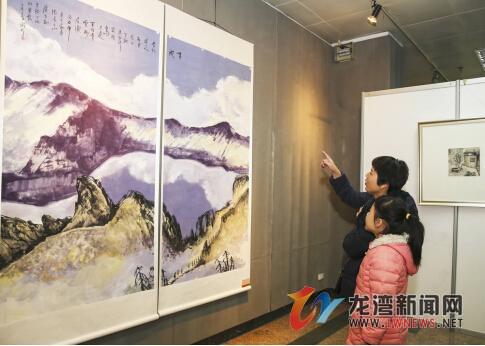 龙湾新闻网讯(杨豪)1月9日,“笔绘珠堡 墨润罗山”王珠润画展在市文化馆一楼展出。据悉,王珠润1942年生于龙湾永昌堡,他长期坚持中国画和钢笔画创作,擅长山水画、人物画、花鸟画,作品获全国第五届钢笔画展优秀奖。此次画展持续到本月16日。图为市民在参观画展。