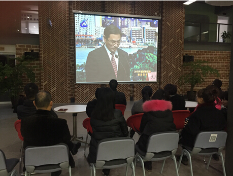 龙湾新闻网讯 1月14日下午1时,全市县市区党政“一把手”述政电视直播在市人民大会堂举行,蒲州街道群众在龙湾区两新工场分会场集体收看“温州市2015年度述政活动”现场直播。