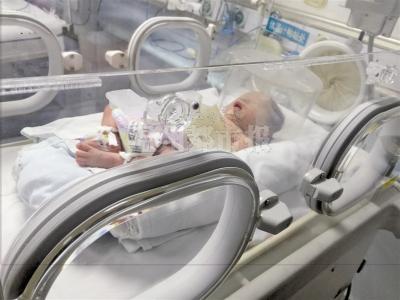 1月24日晚11点多,这个女婴和她的双胞胎妹妹早产出生,她体重只有1.8公斤,患有肺发育不全和“巨型脐膨出”,直接送至新生儿重症监护室治疗。