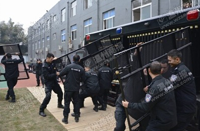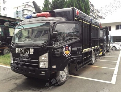 温州网讯一款新型防暴布障车近日在市公安局特警支队亮相,相比以往的防暴车,该车具有快速设置路障和封堵道路的功能。