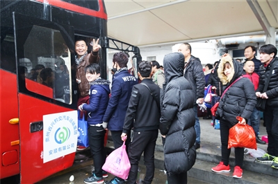 龙湾新闻网讯 (叶晓东 摄)2016年春节运输工作已于1月24日开始,至3月3日结束,历时40天。为保证春运期间广大旅客安全、便利、快捷、有序出行,温州汽车东站明确分工,强化值班制度,成立运力调度组、站务操作及系统维护组、站场安全及秩序维稳组、机务保障组、后勤保障组和信息统计组6个组,制定了运力配置、车票发售、站场安管和服务策划、应急组织和后勤保障6大方案。此外,还开设团体票预定、上门流动售票等服务,市区各大中国邮政网点、温州银行网点也可现场购票。针对回乡客流集中在安徽、江西、湖南、四川、贵州、重庆、河南等地的实际情况,及时调整运力。据统计,昨天一天发送50趟班车。五天来,累计发送240趟班车,运送旅客0.87万人。