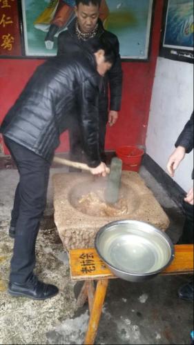 一大早,捣年糕的师傅们就忙乎开了,在长廊上摆桌子、架石臼、蒸粉糕、捣年糕。捣年糕最讲究“捣”字,在两位师傅的默契配合下,一个举捣杵,一个用手火速翻糕团,锅里很快散发出年糕的香味。捣制好年糕后,一大帮村民纷纷围着桌子开始揉捏,制作出自己满意的形状,有元宝、饼状、塔状等各式各样的新春年糕。最后,活动共捣出年糕70多份,全都送给了在场的村民。活动让村民们感受到浓郁的民俗文化。通过互动,还增强了邻里之间的感情,受到了村民们的一致好评。