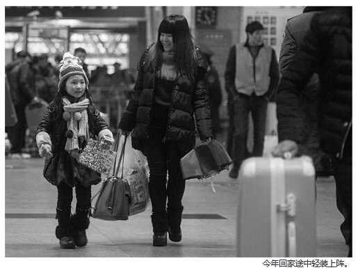 说到过年,任女士记忆最深刻要属大学刚毕业那一年了。她当时在银行工作,无法提早回去,腊月廿八才开始放假,由于买票时间迟,只能从黄牛党手上买到了两张站票。“当时年纪轻,站着也没事,重点是我跟我老公带了5个大包。”任女士说,由于是站票,他们只能在地上铺两张报纸,两人轮流小眯一会,“那时我们最贵的就是电脑了,就搁在行李架上,睡觉很不安心,时不时抬起眼皮扫下电脑包。”