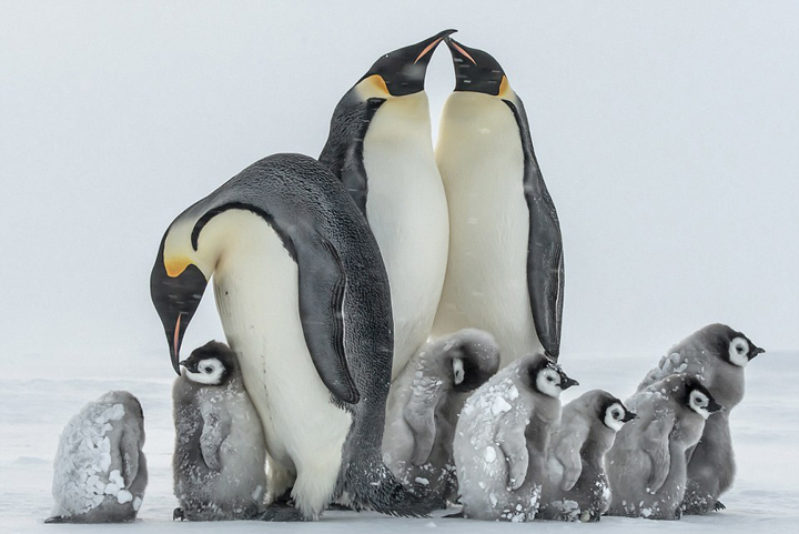 南极帝企鹅宝宝相互依偎抵御暴风雪(组图)