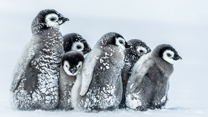 南极帝企鹅宝宝相互依偎抵御暴风雪(组图)