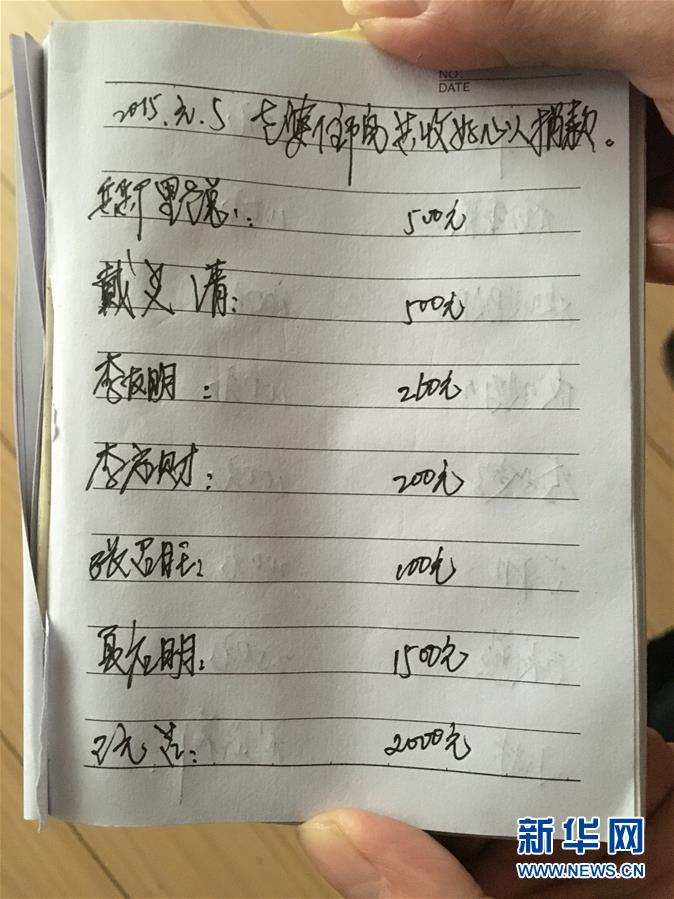 新华社照片,武汉,2016年2月1日一位进城务工者的新年感恩1月8日,李振华展示记下的一笔笔爱心捐款。尽管仍欠着数十万元的外债,但在岁末年初之际,进城务工者李振华最想说的一个词是“感谢”。 2015年1月5日,李振华的四口之家遭遇了一场突如其来的变故——妻子王何爱突发蛛网膜下腔出血。紧急送医后,李振华被告知,这是因脑部动脉瘤破裂引起的出血,治疗周期较长,而且费用不菲。一年间,在妻子治疗过程中,社会各界给予了李振华一家很多的关爱与帮助。李振华说:“社会各界的爱心,给了我坚持的信心和动力。”新华社记者梁建强摄