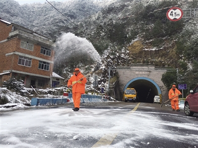 S223省道永嘉黄南段除冰雪现场。耀文摄
