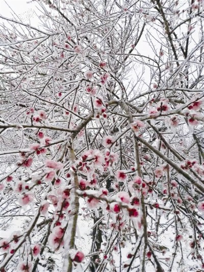 文成铜铃山冰冻梅花。王荣伟 摄