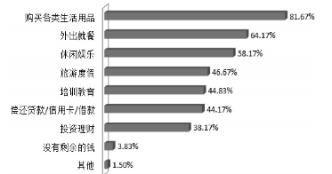 去年市民们的钱都花在哪些地方了呢?调查组专门在问卷中设置了“当满足了基本的生活开销后,您的家庭平常会把剩余的钱用在下列哪些方面”这一问题。结果显示,当前消费不再局限于传统的“吃、穿、住、行”,消费结构趋于多元化。