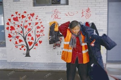 活动发起人、永嘉县网络界人士联谊会会长罗志刚告诉记者,他们也是从网上了解到这种献爱心方式,“今年寒潮特别冷,我们觉得会有很多人需要衣物,放在墙上给大家选取,大家也不会觉得难为情。”罗志刚告诉记者。