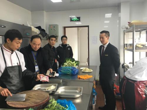 检查小组先对阿六大酒店和顺风楼酒店、云天楼酒店进行检查,检查过程中发现厨房整体卫生比较合格,但仍存在有一些细节问题,例如工作人员佩戴首饰、厨师个别没有穿戴工作服、菜刀没有分类使用等情况,检查人员立即予以指正,要求负责人进行整改。