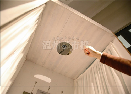 店主柯女士说,起初店内装潢时,从道具厂拿来的材料上就有一个圆洞,目的是放置灯具、增加光亮。后来装修结束,发现店内光线良好,试衣间不用安装吊灯,所以圆洞就空出来了。以往担心引起误会,都会在上面放置一块木板将洞封住。直到小叶向他们反映,才知道木板被移开了。