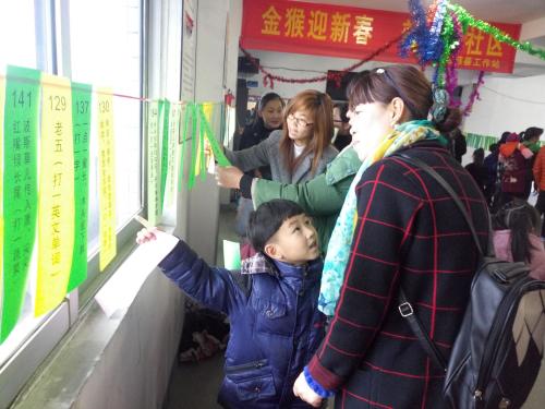 俗话说“正月十五雨打灯。”因天公不作美,原计划在社区大院里开展的猜灯谜活动改在社区文体活动室进行,工作人员在文体活动室布置了五颜六色的各类灯谜恭候广大群众前来竞猜。下午2点活动开始,阴雨的天气并没有浇灭大家欢聚一堂、共度佳节的热情,现场人声鼎沸,“屁股红又红,尾巴像湾沟”,有小朋友大声的喊出了这是猴子;也有人注视着灯谜眉头紧锁,苦思冥想,还有几人凑在一起研究谜底。