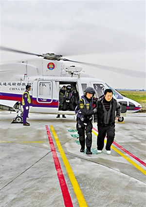池仁伟提到的那次救援发生在今年1月2日,东海海域某渔船上一名船员被金属物体打中头部,当场昏迷,生命垂危。“东一飞”调派直升机找到发出求救信号的渔船,并成功将受伤船员送往附一医救治。