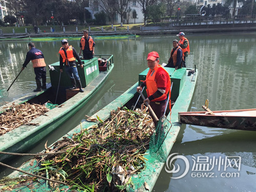 广电市民义工团环保义工队与温州职业技术学院志愿者服务队将近20人,来到鹿城蒲州横河检查生态河道治理情况,深入宣传“五水共治”,并以实际行动为美丽浙南水乡建设贡献一份力量。义工志愿者穿上救生衣登上保洁船,打捞河面上的垃圾。义工志愿者向广大市民发放“五水共治”宣传品,张贴宣传海报,引导大家爱护水环境、保护水环境。