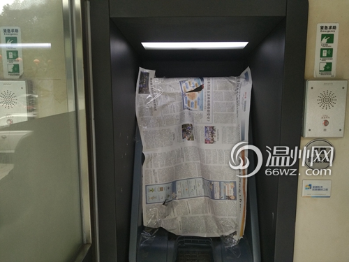 记者在现场看到,A4舱室的玻璃门被锁死,玻璃门上贴着“本机暂停服务”告示,透过上面的玻璃看到,ATM机被报纸覆盖,无法看出具体的受损情况,不过ATM机的数字键盘上,仍可以看到玻璃碎片,以及一些小碎石子。