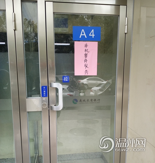 今天中午,记者来到位于站西路的鹿城农商银行火车站分理处,门口共有4台ATM机,分别标注为A1、A2、A3、A4。ATM机的隔壁是一家面店,员工李先生告诉记者,被砸的是标注A4的ATM机。