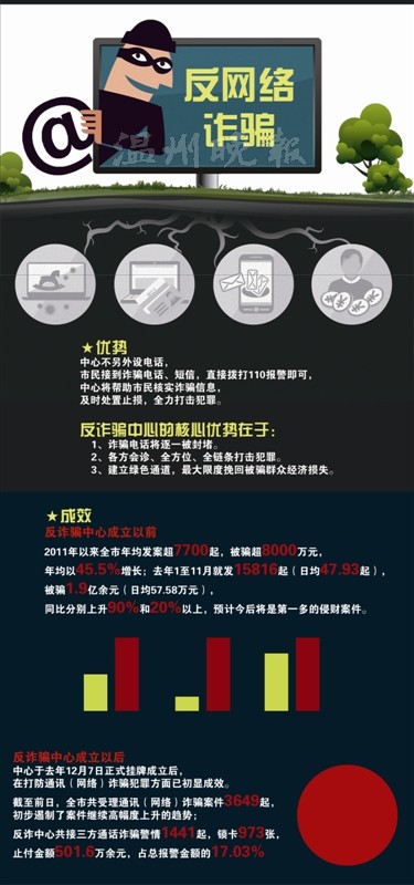 为遏止愈演愈烈的趋势,温州市委政法委为此做了许多工作,最后促成市反通讯(网络)诈骗中心的成立。
