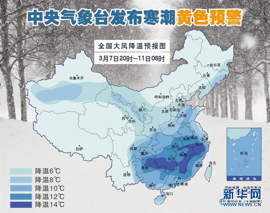图表:中央气象台发布寒潮黄色预警新华社发大巢制图