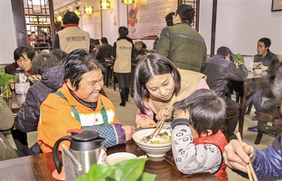 温州网讯 午餐时分,龙湾雨花斋素食馆座无虚席。沿永中街道罗东街至罗东南街,包括雨花斋在内,沿线散布的免费餐厅、爱心驿站、伏茶点等,正串联起一条南北走向的“慈善走廊”。杨豪摄