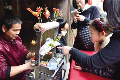 栩栩如生的小糖人吸引了孩子们的眼球。