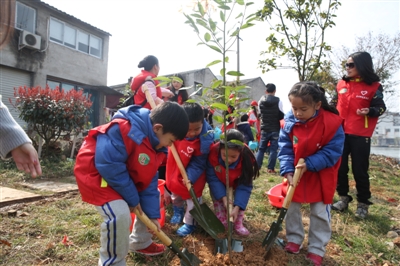 图为护绿“小使者”在上江河岸植树 露霞摄