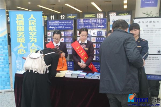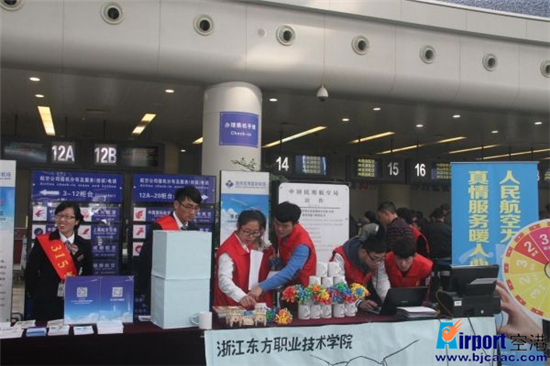 3月15日,温州机场邀请民航温州监管局,温州龙湾区消费者权益保护委员会和龙湾工商所,中国航油温州分公司等单位以及浙江东方职业技术学院的志愿者,在国内、国际候机楼、尊易贵宾厅联合开展3·15真情服务主题宣传活动。