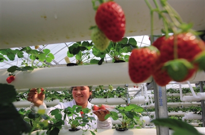 近日,龙湾雅林水培园中草莓相继成熟。该园5万多株草莓都采用立体无土基质栽培技术。无土栽培使用电解功能水,具有高效杀菌、无污染、使用操作简便等特点,是一种高效的种植新技术。