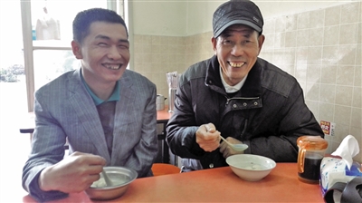 好心人请孙玉金和娃子吃爱心早餐。叶晓东摄