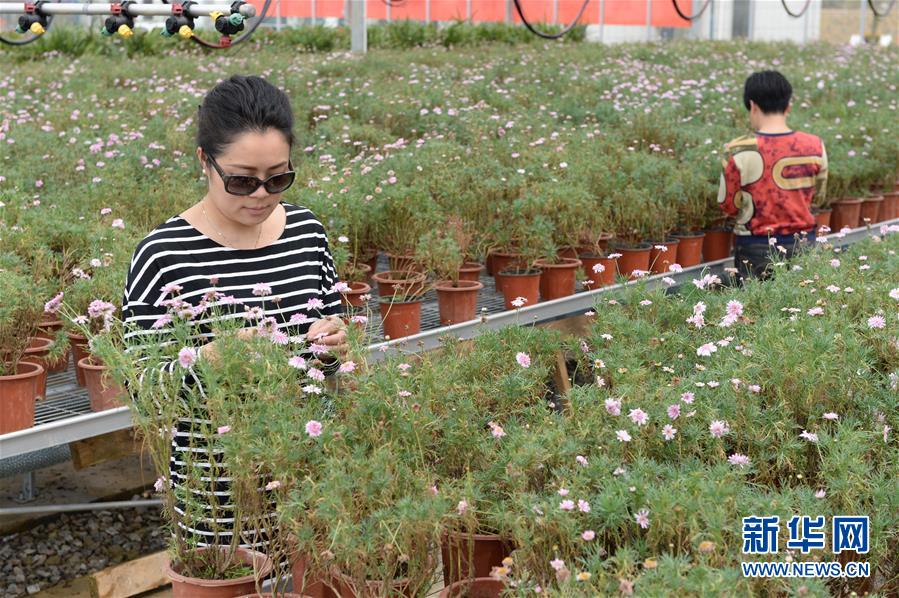 3月20日,在贵阳市乌当区农业科技园区,两位客商在挑选花卉苗。新华社记者杨楹摄