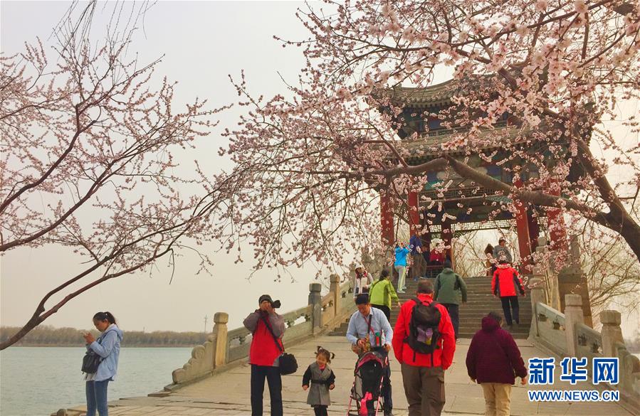 近期,随着北京市气温逐渐升高,颐和园内的桃花、玉兰花等纷纷绽放,吸引市民和游客前来游园观赏。
