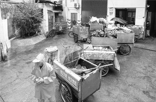 这样的情况,老林夫妇已习以为常。苏阿姨说,他们公司管得严,每月都开例会要大家保证垃圾不落地。苏阿姨也有自己的方法,排队时常能碰上几个同事,大家一合计,留一人占位守候,发现清运车到达后,就迅速电话通知所有人,但很多时候也要靠运气,留下的人也有可能白等一天。