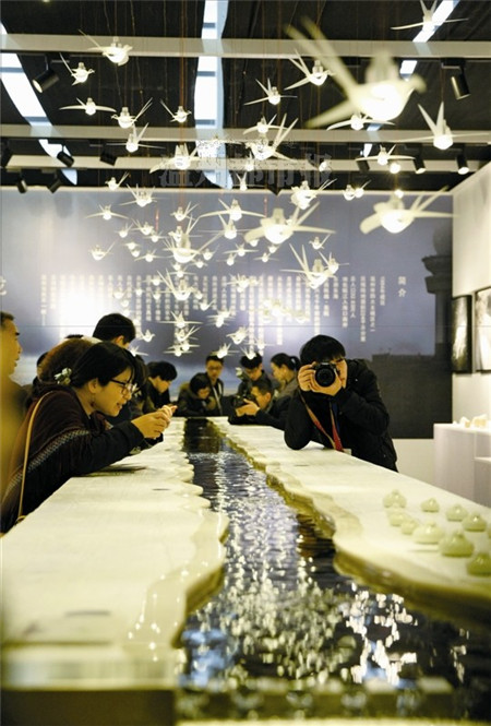文博会不仅吸引了国内外的时尚产品,也让温州不少传统艺术家的创新产品拿到这次展会上亮相。瓯窑与瓯塑结合的创新作品,在传统经典展区的温州市瓯塑艺术学会展位上展出。