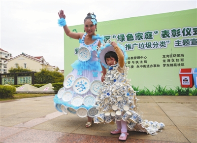 图为环保创意时装展示现场。