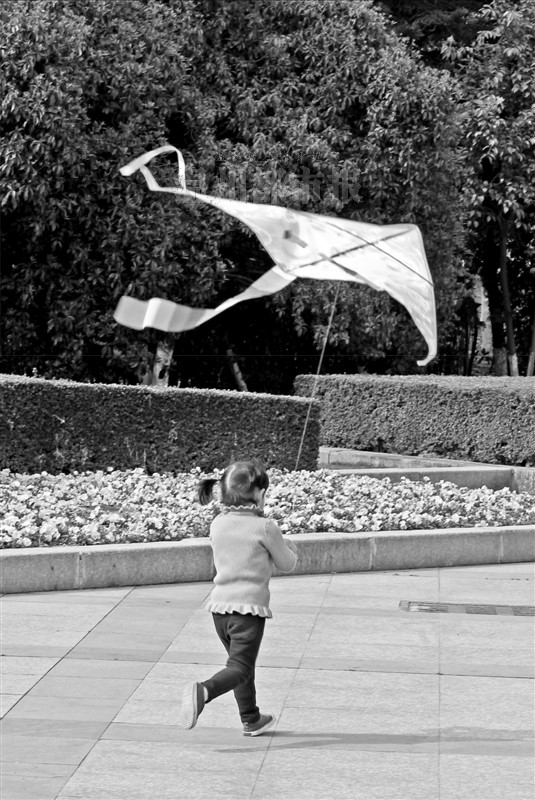 昨天下午,绣山公园,一个小女孩在放风筝。记者姚卡/摄